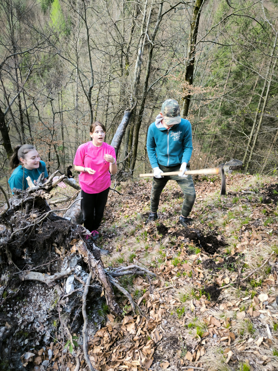 Today, Tuesday, April 9th, 8th and 9th grade students took part in an interesting project in the Laskomer Valley. In order to offset the carbon footprint left behind during our Erasmus+ trips abroad, the students and I decided to actively contribute to environmental protection. In the framework of cooperation with the Banská Bystrica Urban Forests, under the leadership of Ing. Jozef Jankov and his collaborators, they started planting trees.