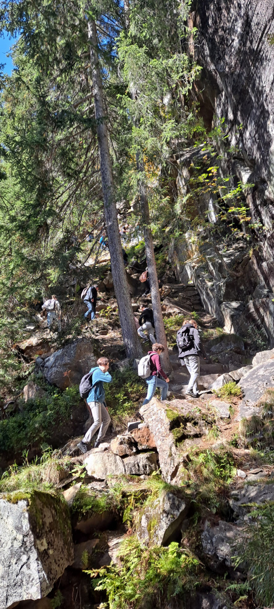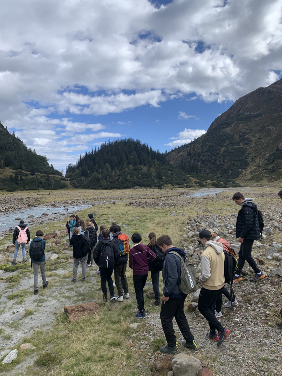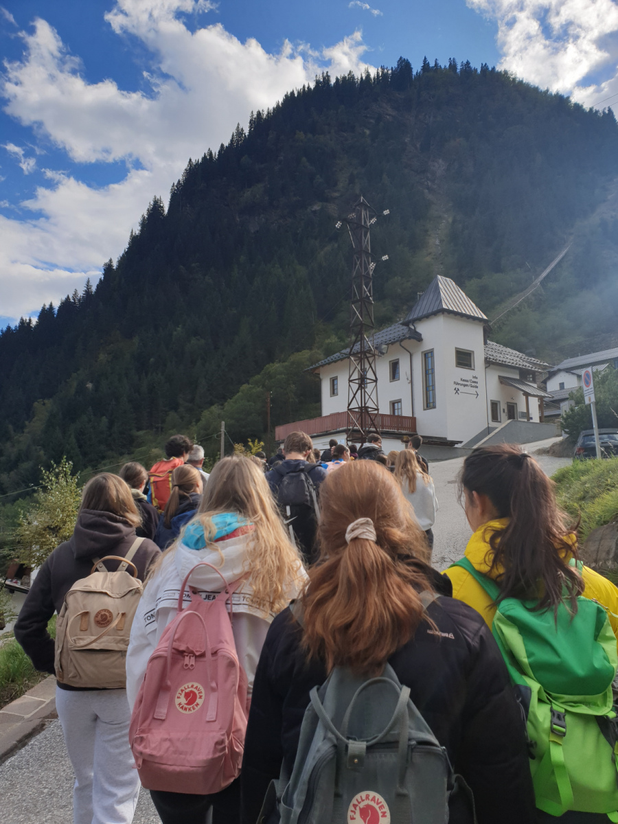 Der Dienstag stand ganz im Zeichen von Bergbau und Natur. Am Vormittag besuchte die Projektgruppe das Bergbaumuseum Ridnaun und erfuhr vieles über Abbaumethoden, Transport von Erz und das schwere Leben der Bergarbeiter. Auch die Rolle der Fugger im Wipptal wurde thematisiert. Zu Mittag wanderte die Truppe dann zur “Aglsboden-Alm”, genossen bei herrlichem Sonnenschein ein leckeres Hütten-Mittagessen, und die SchülerInnen produzierten tolle land art-Kreationen mit Naturmaterialien, die dann der gesamten Gruppe vorgestellt und in Videos festgehalten wurden.