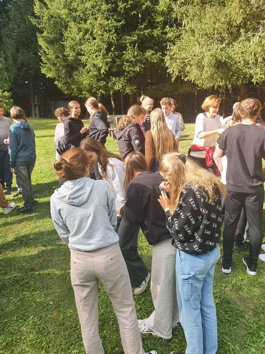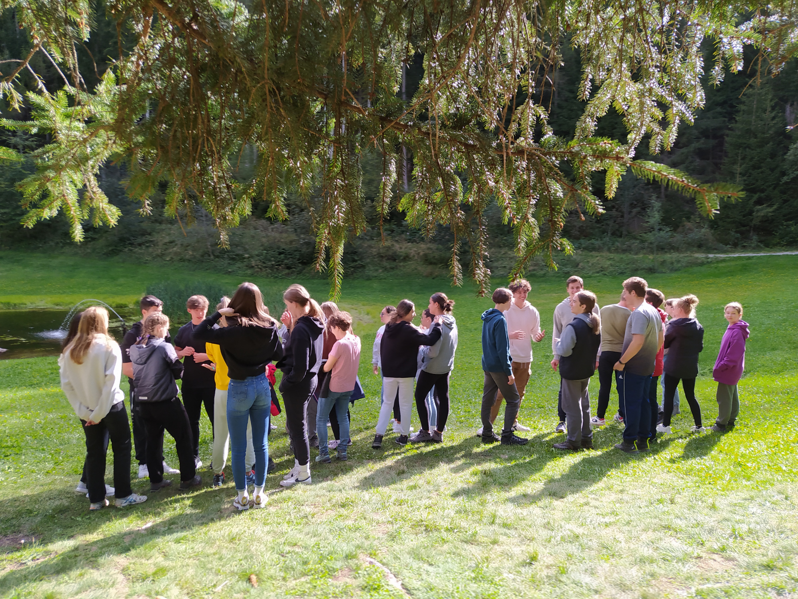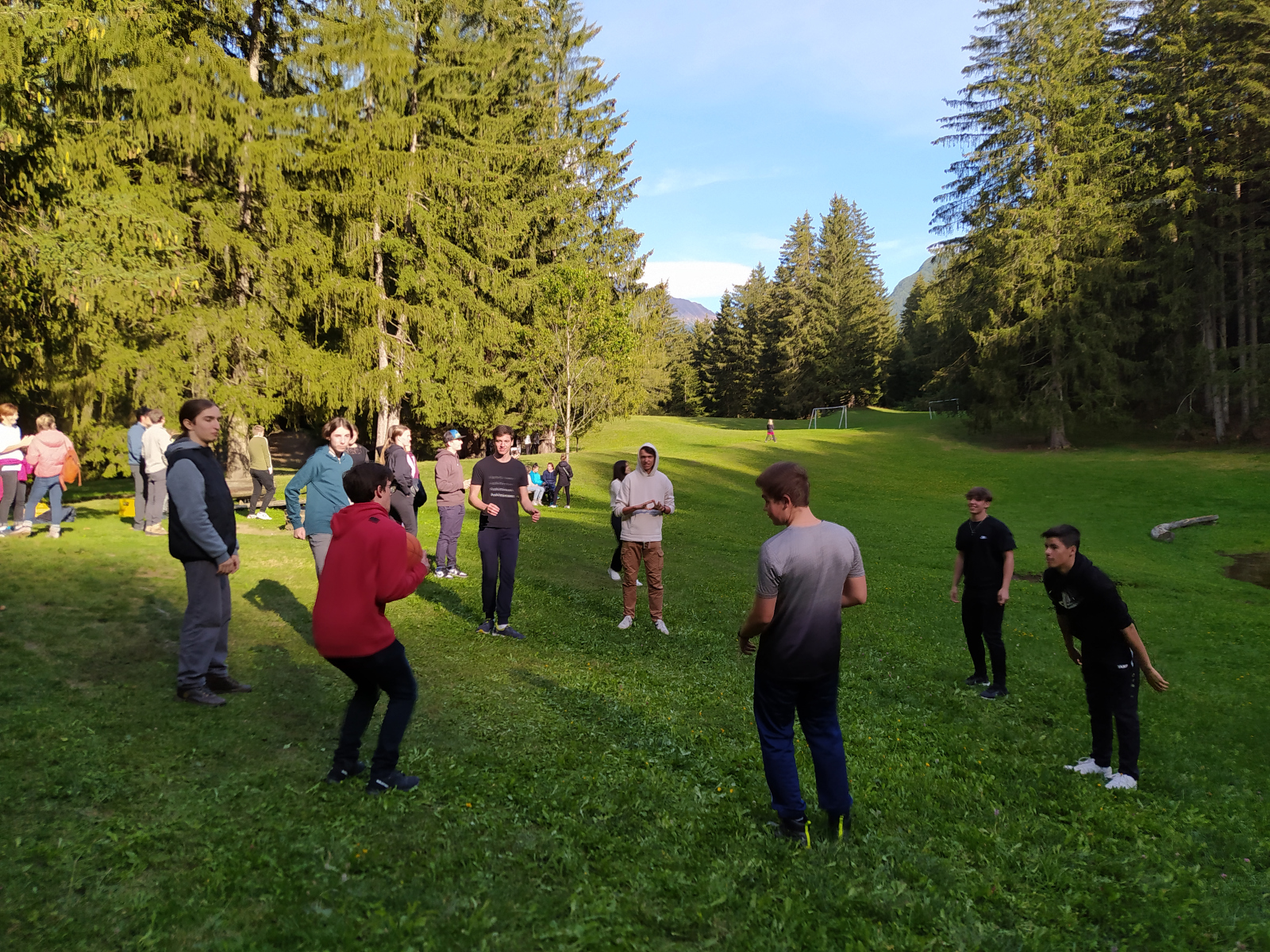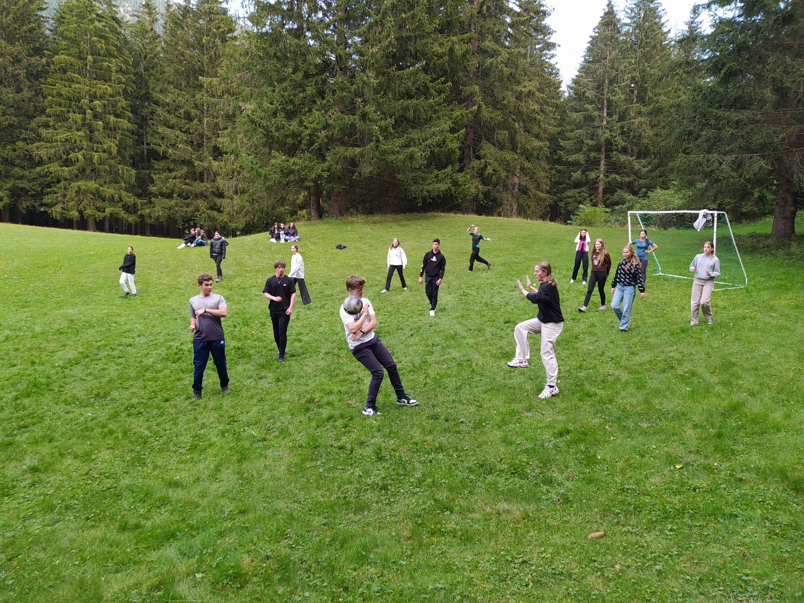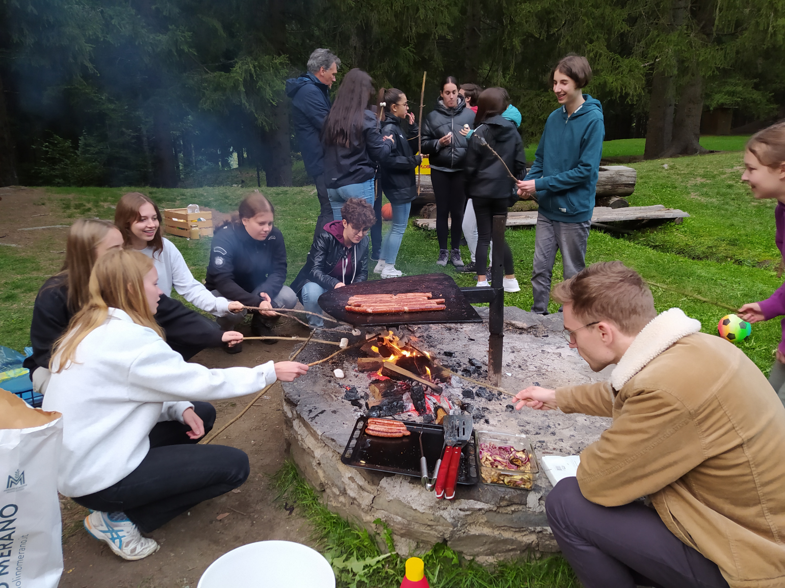 Den Sonntag, 18. September, verbrachten die Gäste bis zum Nachmittag in den Gastfamilien. Dann ging es gemeinsam auf eine kleine Wanderung zum „Rofisboden“. Bei Kennenlernspielen und Fußball verging die Zeit schnell, am Abend wurden am Lagerfeuer Würstchen und Marshmallows gegrillt.