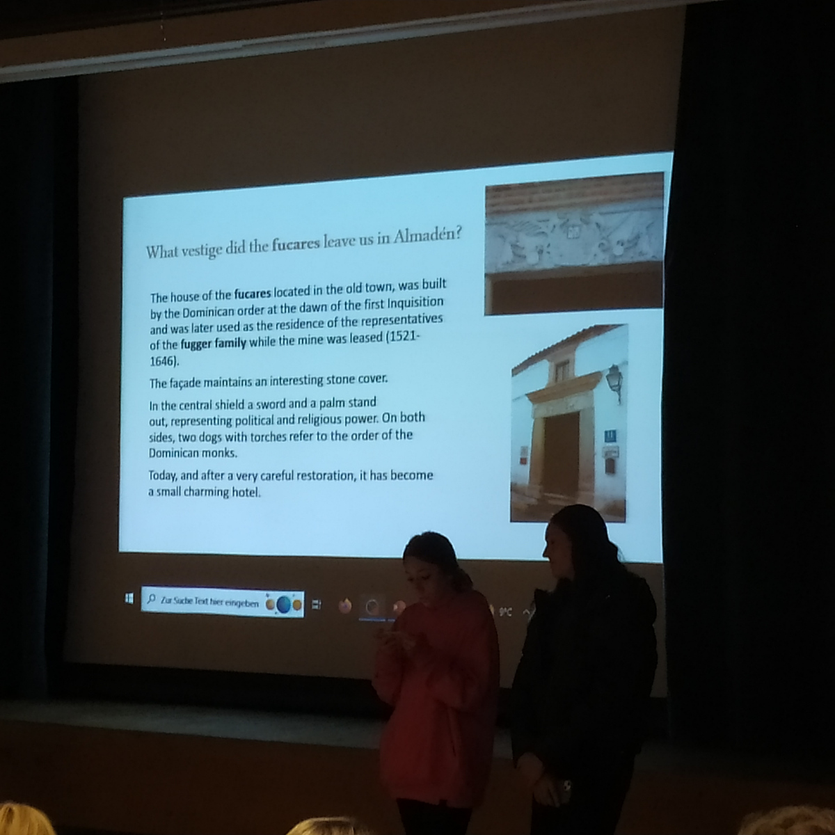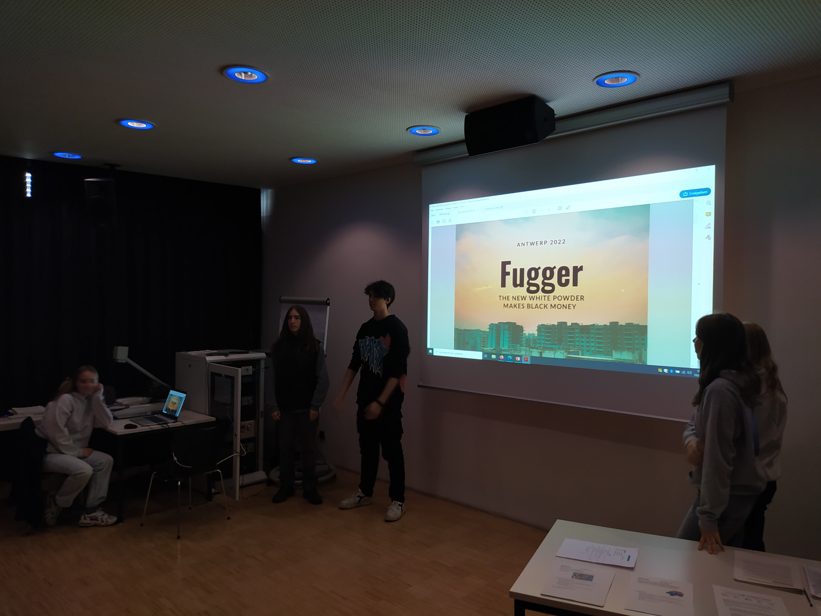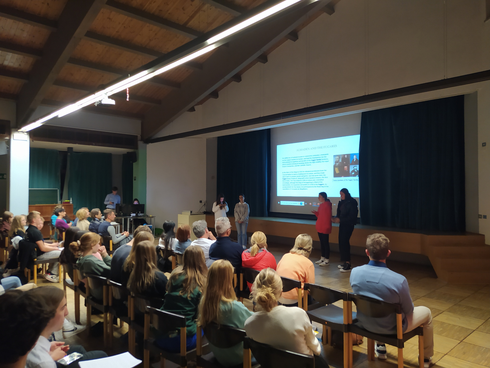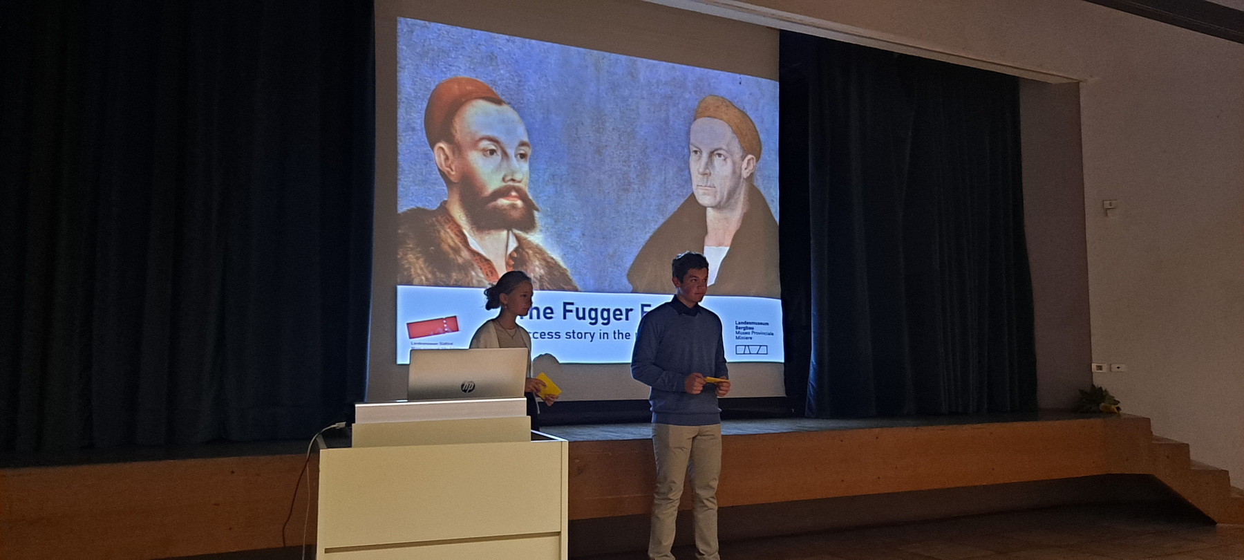 Den Abschluss der Woche bildete das “Fugger Forum”, das für alle Partnerländer auch als Livestream übertragen wurde. Das Forum bestand aus zwei Teilen: zwei Experten hielten Vorträge – Frau Sofia Steger vom Landesmuseum Bergbau berichtete über die Rolle der Fugger-Familie in den Minen Tirols, und Frau Theresa Rothfuß referierte über Lucas Geizkofler, einem Sterzinger Anwalt im Dienste der Fugger in Augsburg -, dann präsentierten die SchülerInnen der Partnerschulen auf sehr kreative Weise die Fugger-Spuren in ihren jeweiligen Städten. Abgeschlossen wurde der Abend mit einer Foto-Show, die die Austauschwoche in Bildern Revue passieren ließ.