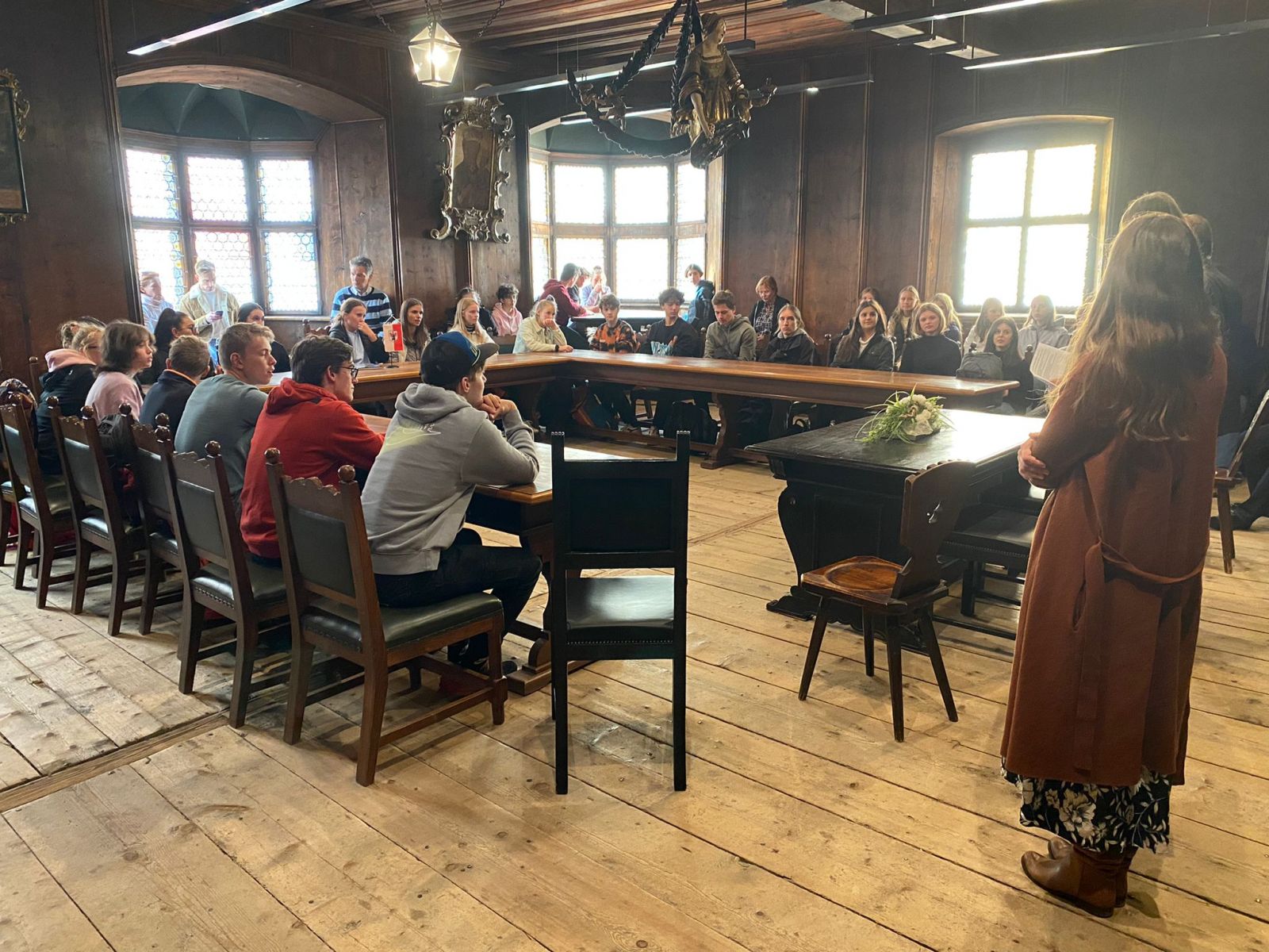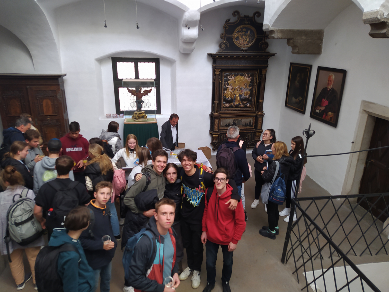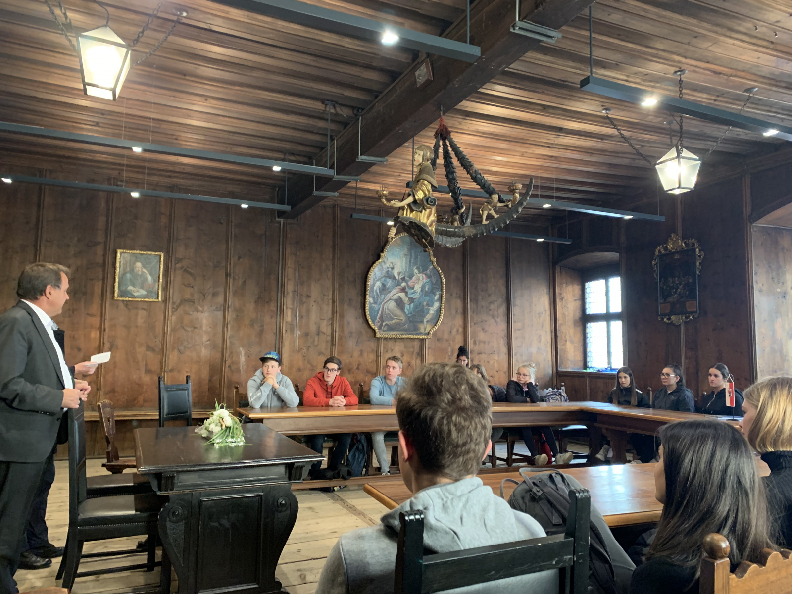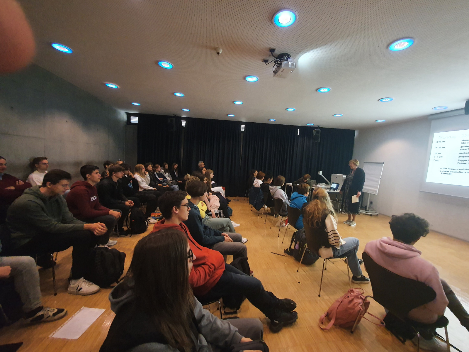 Den Abschluss der Woche bildete das “Fugger Forum”, das für alle Partnerländer auch als Livestream übertragen wurde. Das Forum bestand aus zwei Teilen: zwei Experten hielten Vorträge – Frau Sofia Steger vom Landesmuseum Bergbau berichtete über die Rolle der Fugger-Familie in den Minen Tirols, und Frau Theresa Rothfuß referierte über Lucas Geizkofler, einem Sterzinger Anwalt im Dienste der Fugger in Augsburg -, dann präsentierten die SchülerInnen der Partnerschulen auf sehr kreative Weise die Fugger-Spuren in ihren jeweiligen Städten. Abgeschlossen wurde der Abend mit einer Foto-Show, die die Austauschwoche in Bildern Revue passieren ließ.