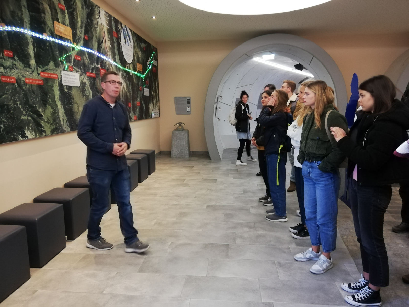 Und schon war der letzte Tag der Austauschwoche gekommen. Im Rahmen des Hauptthemas “Transport und Handel früher und heute” besuchte die Projektgruppe das Museum „Tunnelwelten“ zum Brenner Basis Tunnel in Steinach am Brenner auf österreichischer Seite und hatte auch Gelegenheit, die beeindruckende Baustelle zu besichtigen. Die TeilnehmerInnen erhielten viele Informationen zum Bau dieses Jahrhundertprojektes, das größtenteils von der EU finanziert wird.