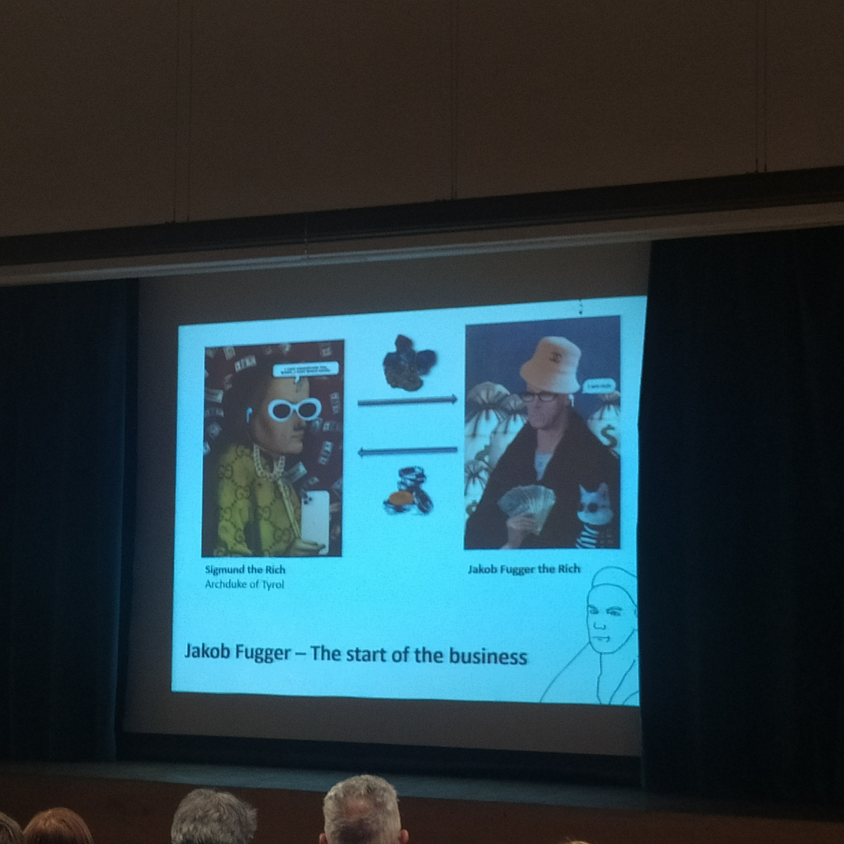 - Filmen von Rollenspielen: ein Minenarbeiter, ein Fuhrunternehmer, ein Bewohner der Fuggerei von früher treffen auf einen Bergarbeiter, einem Logistikunternehmer und einen Bewohner der Fuggerei von heute, außerdem sollte es zu einer Begegnung zwischen Jakob Fugger und Jeff Bezos kommen; es wurden Vergleiche gezogen, Unterschiede und Gemeinsamkeiten herausgearbeitet und in einen Dialog gepackt