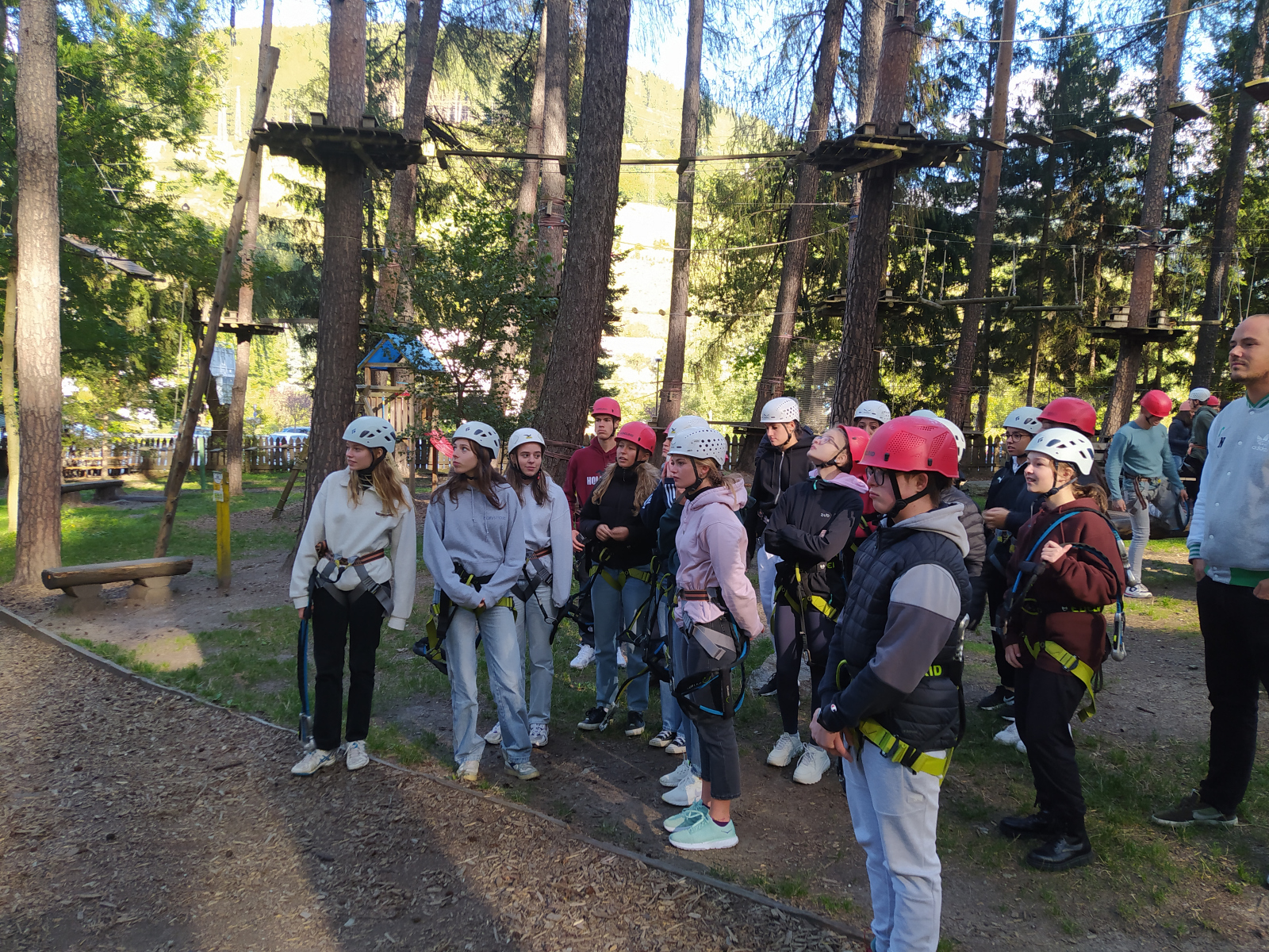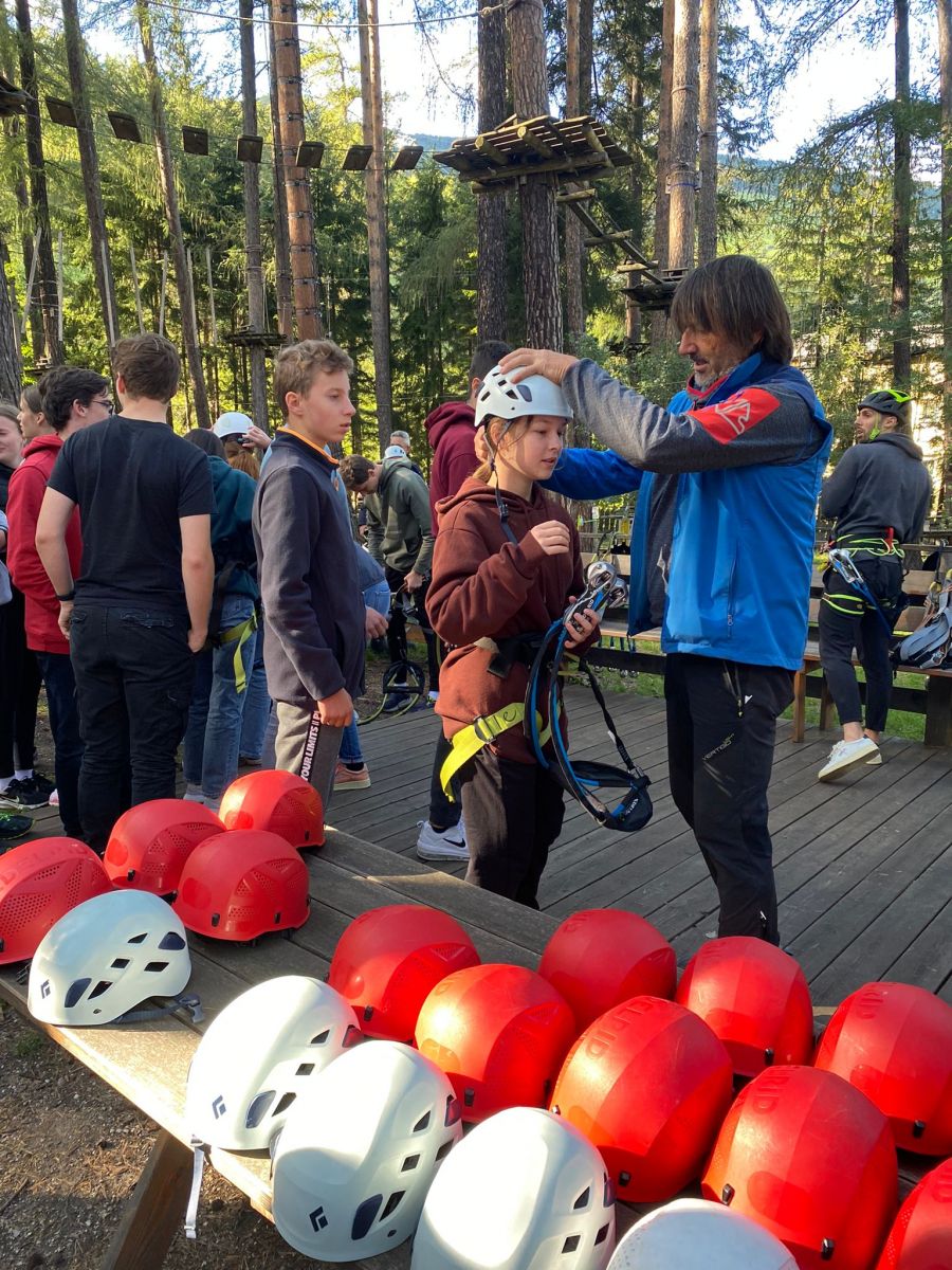 Nach dem Mittagessen in der Schulmensa erkundeten die SchülerInnen und Lehrpersonen die Stadt Sterzing interaktiv mit der App “Actionbound”, dann wurden sie von Bürgermeister Peter Volgger und der Stadträtin für Schule und Kultur Frau Verena Debiasi im Rathaus empfangen. Viel Spaß hatten die SchülerInnen und Lehrpersonen anschließend beim Klettergarten “Skytrek” – einige stießen in ungeahnte Höhen vor…
