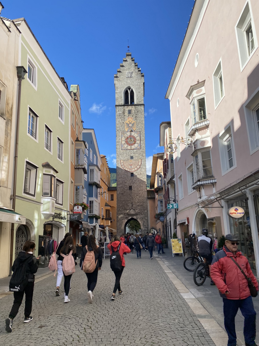 Am Mittwoch durften die Gäste Stadtluft schnuppern. Es ging mit dem Zug in die Landeshauptstadt Bozen, wo die Stadt mit einer geführten Tour, in der auch die Rolle Bozens als wichtige Handelsstadt hervorgehoben wurde, erkundet wurde. Kein Südtirol-Aufenthalt ohne dem Ötzi einen Besuch abzustatten – am Nachmittag hatte die Gruppe Gelegenheit, diesen außergewöhnlichen historischen Fund im Ötzi-Museum zu bewundern. Dieser Tag wurde mit einem gemeinsamen Grillabend an der Schule abgeschlossen.