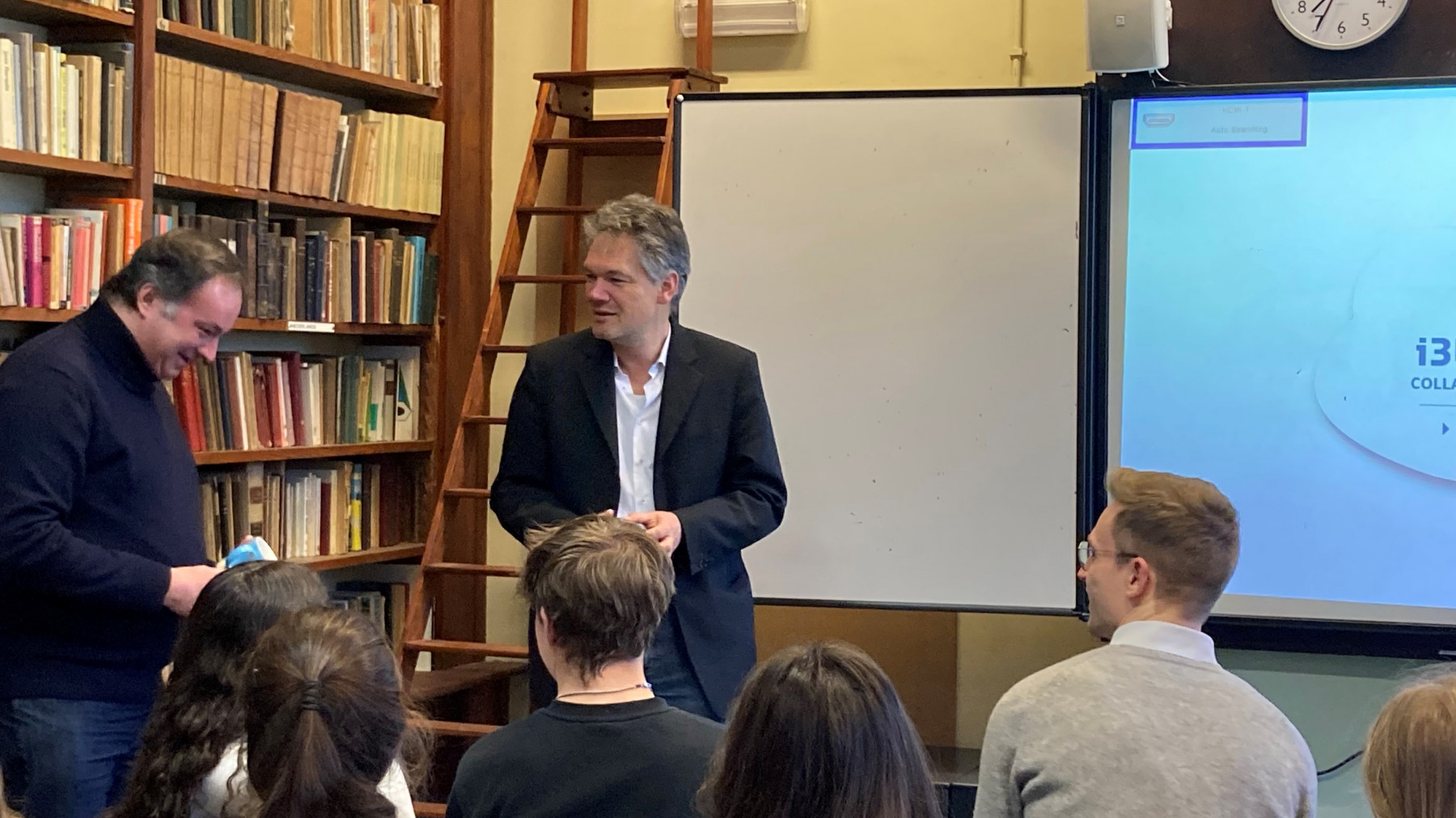 Anschließend kehrten alle in die Schule zurück, um sich auf das Fuggerforum vorzubereiten. Während dieser Präsentation, die per Live-Stream verfolgt werden konnte, sprachen zwei Hauptredner zu den Zuhörern. Der erste war Professor G. Marnef, der über Antwerpen in der Zeit von Jakob Fugger sprach. Er betonte, dass die Stadt dank Menschen wie Fugger im 16. Jahrhundert zum größten Hafen Europas wurde. Auf ihn folgte eine kurze Rede von L. Van Looveren, einem VOKA-Delegierten, der die Bedeutung unseres Hafens im 21. Antwerpen ist und bleibt der Motor Flanderns mit fast 200.000 Arbeitsplätzen und einem enormen Umsatz.