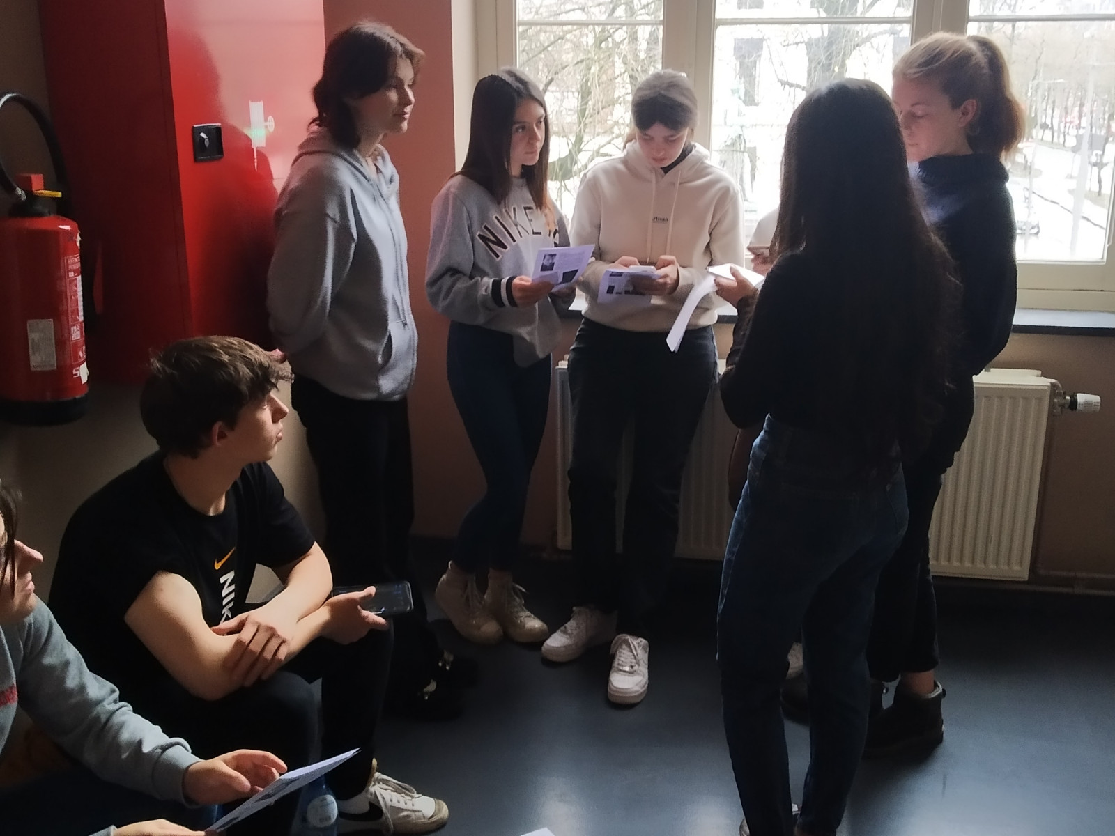 Am Donnerstag, dem 9. März, war der Wettergott wieder nicht gnädig, aber die Gruppe ließ sich nicht abschrecken und fuhr mit dem Wasserbus nach Lillo. Auf dem Weg dorthin bekam die Gruppe einen Einblick in das geschäftige Treiben des Hafens aus erster Hand: Vorbei am Steen – dem Standort des alten Stadthafens, wie er zur Zeit Jakob Fuggers und in den folgenden Jahrhunderten genutzt wurde – ging es vorbei am Hafenhaus und dann an zahlreichen Chemieunternehmen wie 3M, Total Energies, Exxon, Katoennatie, Bayer und vielen anderen. Viele Anlegestellen später legten wir kurz in Kallo an, bevor wir schließlich das Polderdorf Lillo erreichten, von dem aus wir die Kühltürme von Doel deutlich sehen konnten. Nach einem kurzen Besuch des von Napoleon errichteten Schießpulvermagazins wurden auf dem Rückweg einige verirrte Schüler aufgesammelt. In dem, was vom Polderdorf Lillo-Fort übrig geblieben ist, kann man hautnah erleben, wie der Ausbau des Hafens die Lebensqualität von Mensch und Tier gefährdet; im Glück wähnt man sich in einer Idylle, bis man auf den Wällen steht und der infernalische Lärm einen trifft. Zurück in der Stadt, machte sich die Gruppe auf den Weg nach Eilandje. Einige Studenten trotzten dem Regen und gingen auf das Dach des MAS, um während des Mittagessens die Aussicht auf die Stadt zu genießen. Danach stand das Red Star Line Museum auf dem Programm, das eine weitere wichtige Geschichte aus Antwerpens reicher Geschichte erzählt, nämlich die der Auswanderer in die Neue Welt, die hauptsächlich aus Osteuropa, aber auch aus Belgien kamen, in der Hoffnung, ein neues und besseres Leben zu beginnen. Doch die Reise war anstrengend, nicht zuletzt wegen der medizinischen Kontrollen, die oft zu menschlichen Tragödien führten, wenn man in der dritten Klasse reisen musste (was bei den meisten der Fall war). Der Besuch gab den Schülern Denkanstöße und Inspiration für den Workshop am nächsten Tag. Nach dem Besuch war das Wetter eine Zeit lang gut, so dass die Schüler die trockene Insel mit einem Quiz auf der Actionbound-App weiter erkunden konnten.