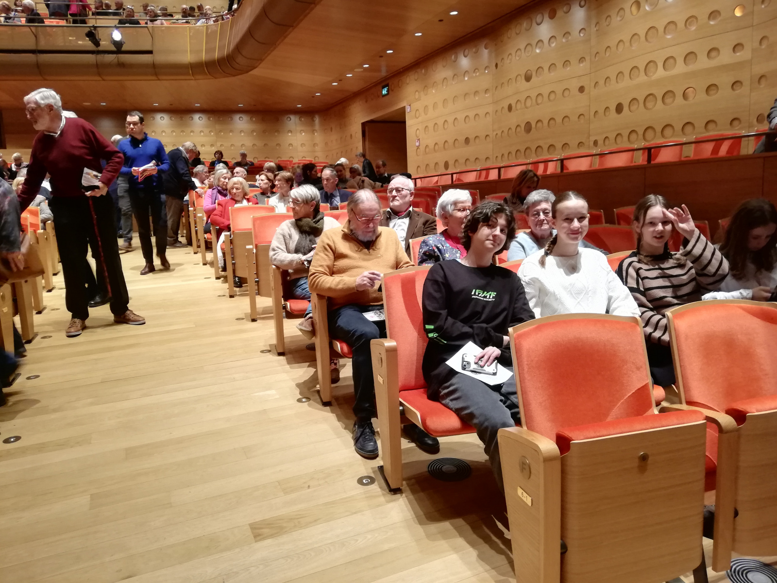Im Anschluss an diese Präsentationen gesellte sich Eliene Van Aken von Alfaport, die alle – auch kritischen – Fragen aus dem Publikum enthusiastisch und klar beantwortete, zu der Gruppe und führte ein Interview. Das Video dieses Interviews finden Sie hier. Die Gruppe war nun ausreichend informiert, um am nächsten Tag den Hafen von Antwerpen zu erkunden. Am Nachmittag hatten die Schülerinnen und Schüler etwas Freizeit. Einige von ihnen verirrten sich in den Wundern des Schokoladenmuseums. Am Abend traf sich die Projektgruppe im Königin-Elisabeth-Saal, der in diesem Jahr sein 125-jähriges Bestehen feiert. Der Konzertveranstalter Cofena verwöhnte die Teilnehmer mit musikalischen Wundern von Mozart und Beethoven. Die Menschen waren beeindruckt von dem Gebäude und von der himmlischen Musik.