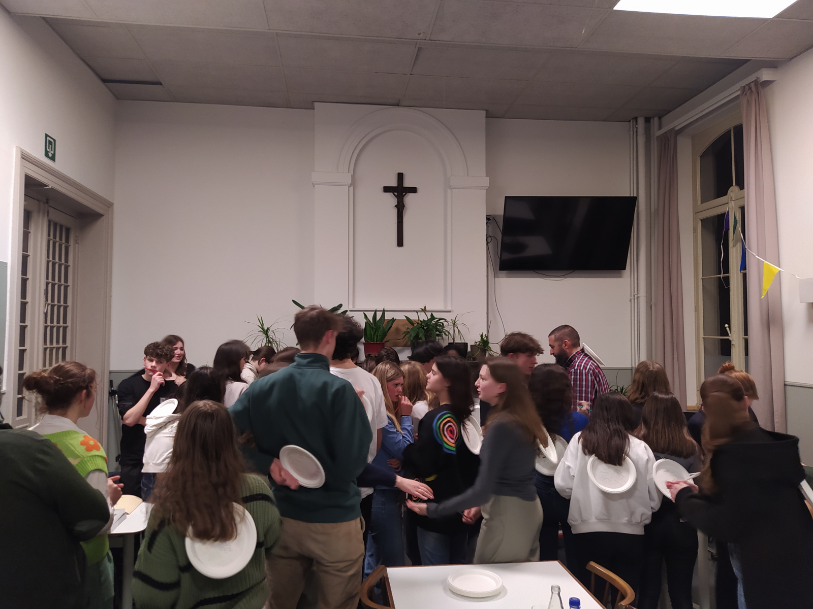 Am Montag, dem 6. März, wurden die Gäste von der Schulleiterin Cécile Veraert begrüßt, die sie in die reiche Tradition des Onze-Lieve-Vrouwecollege plus (Kolleg Unserer Lieben Frau plus) einführte und eine kurze Einführung in das Ignatianische Bildungsprojekt gab.