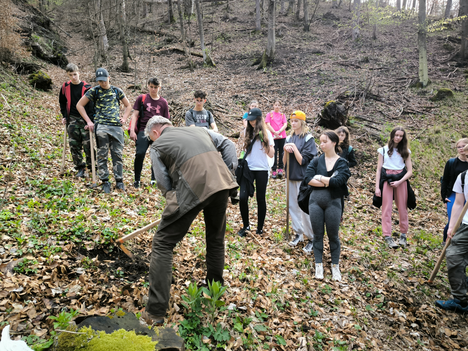 Today, Tuesday, April 9th, 8th and 9th grade students took part in an interesting project in the Laskomer Valley. In order to offset the carbon footprint left behind during our Erasmus+ trips abroad, the students and I decided to actively contribute to environmental protection. In the framework of cooperation with the Banská Bystrica Urban Forests, under the leadership of Ing. Jozef Jankov and his collaborators, they started planting trees.