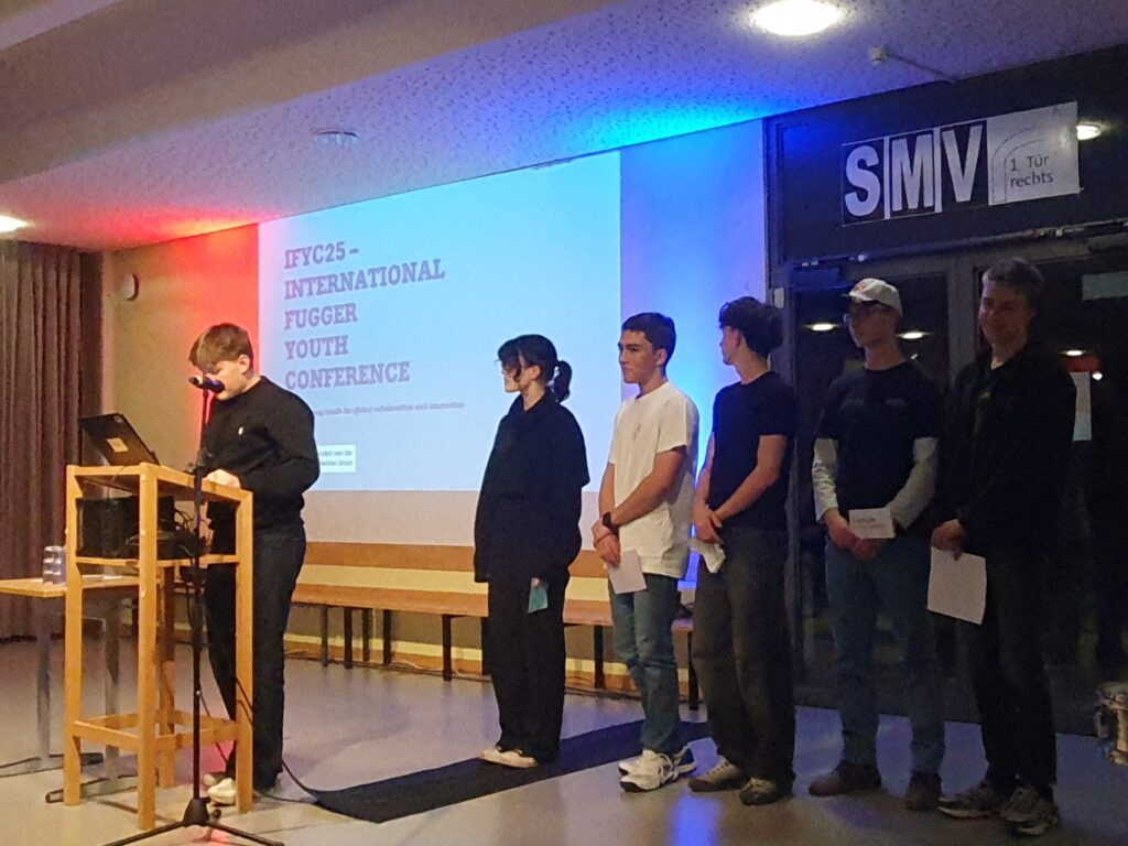 Niklas Wildner, Lidia Kloubert, Tobias Stürzl aus der 11. Jgst. Levi Golgowsky und Arthur Bitencourt Rocha aus der 10. Jgst. berichteten von der IFYC25, die im Oktober 2025 in Allmadén stattfand. Sie setzten sich im Rahmen der Konferenz nicht nur mit der Erfolgsgeschichte der Firma Fugger, sondern auch mit den Folgen von Bergbau und Handelsexpansion für Mensch und Umwelt auseinander.