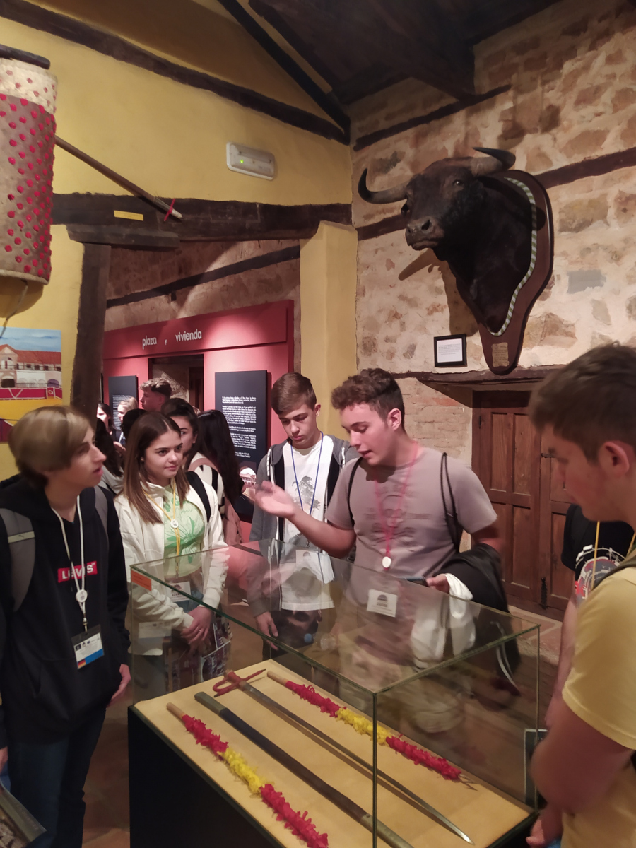 The 3rd Erasmus+ student mobility took place from October 8th to 14th, 2022 in Almadén, Spain. The groups from Augsburg, Banská Bystrica and Sterzing took very early flights to have the opportunity to visit the city center of Madrid on Saturday. Thanks to Katharina Dehner from the Fugger and Welser Museum in Augsburg, who visited Almadén with the Erasmus+ groups as part of the European Fugger Road, and who has lived in Madrid for some time of her life and offered her knowledge and experience of life in the city, the pupils learnt a lot of interesting information about the history and present of Madrid. After meeting the group from Belgium in the afternoon at the airport, the whole group travelled to Almadén by bus where they were finally warmly welcomed by their Spanish hosts.
