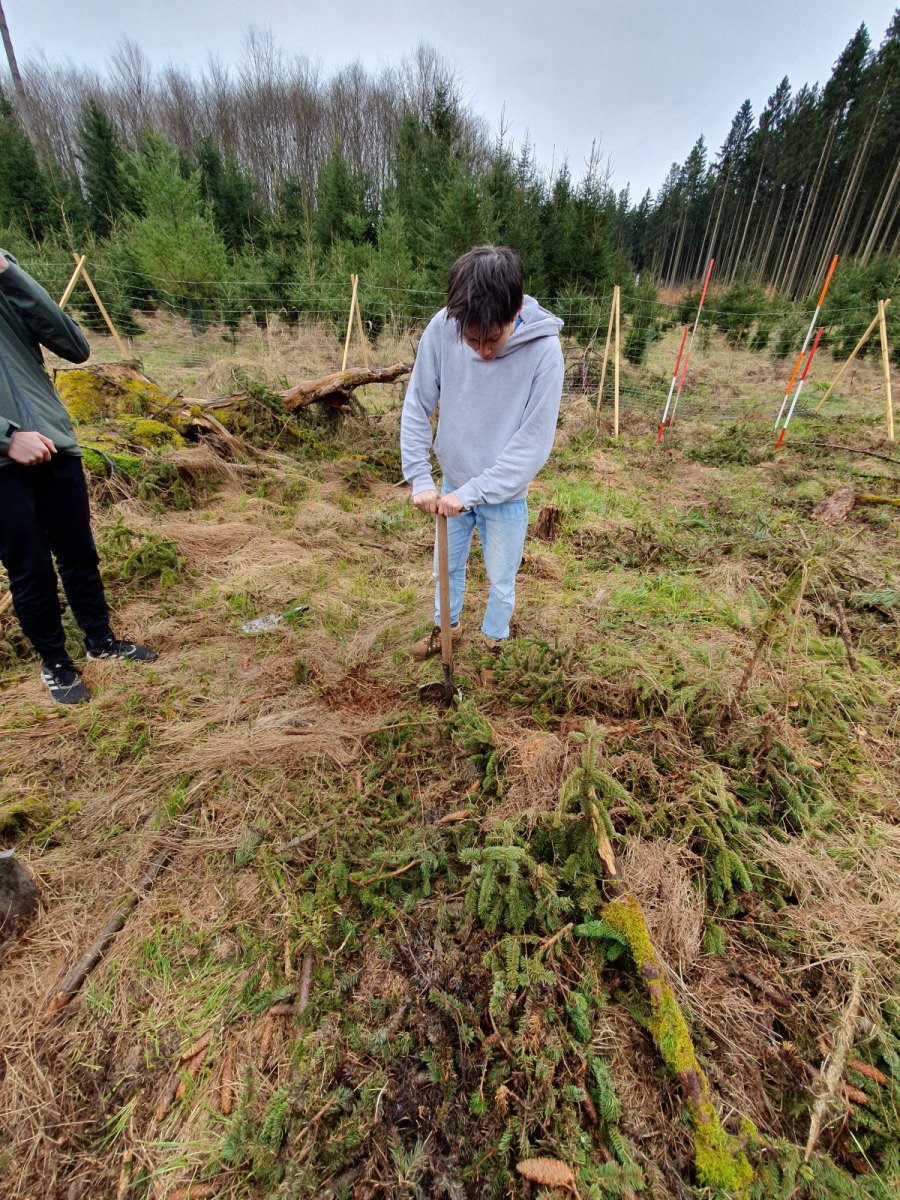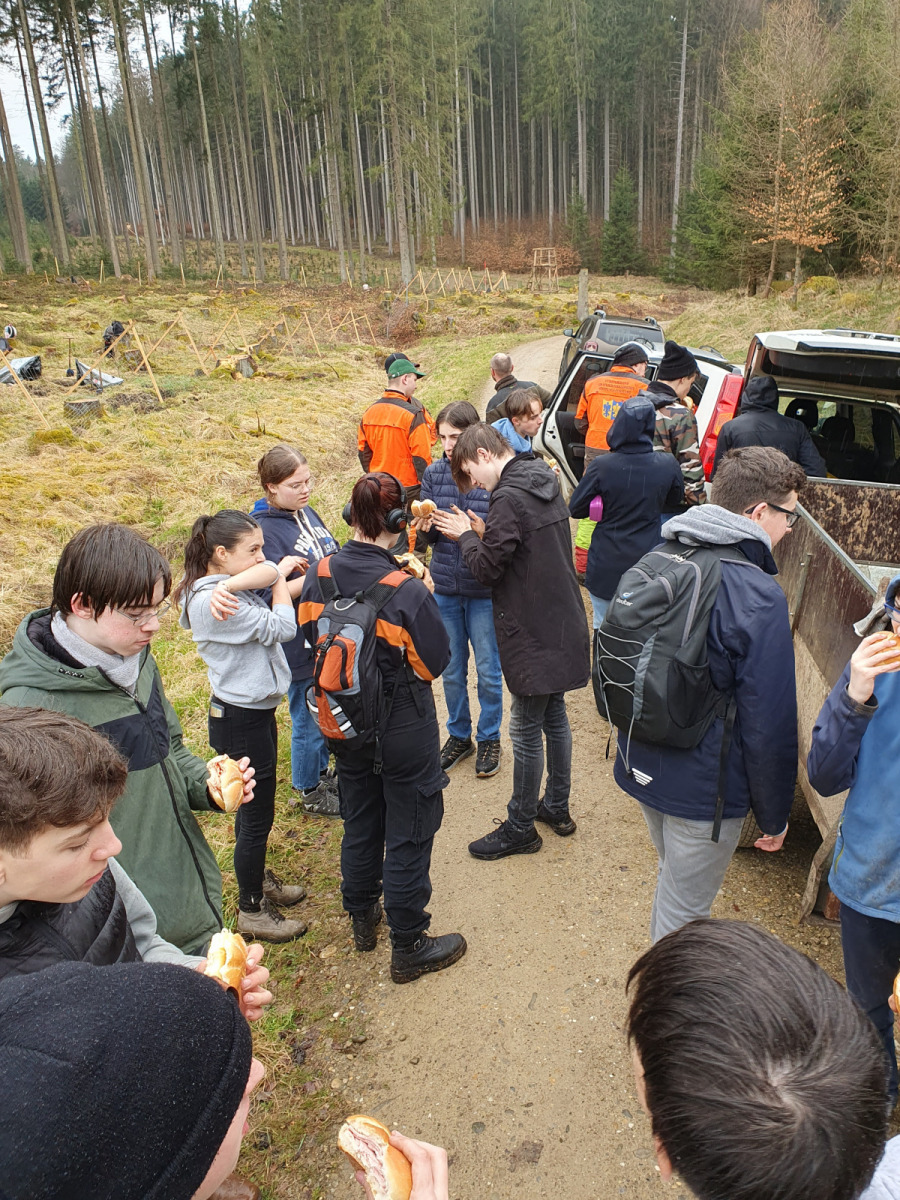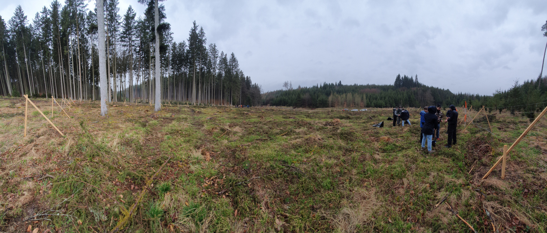 After two hours of hard work, partly in the pouring rain, Mr Mayer surprised the group with a snack. Thus fortified, the group continued and in the end can be more than proud of the 350 trees planted. According to Mr. Mayer, this is approximately equivalent to 4.4 tonnes of CO2. Burcu summed up the morning as follows: «I learned how mixed forests are formed, how the correct planting affects the whole life of the tree and which soils are suitable or unsuitable. I also found planting in the group was very nice and that despite the rain!».