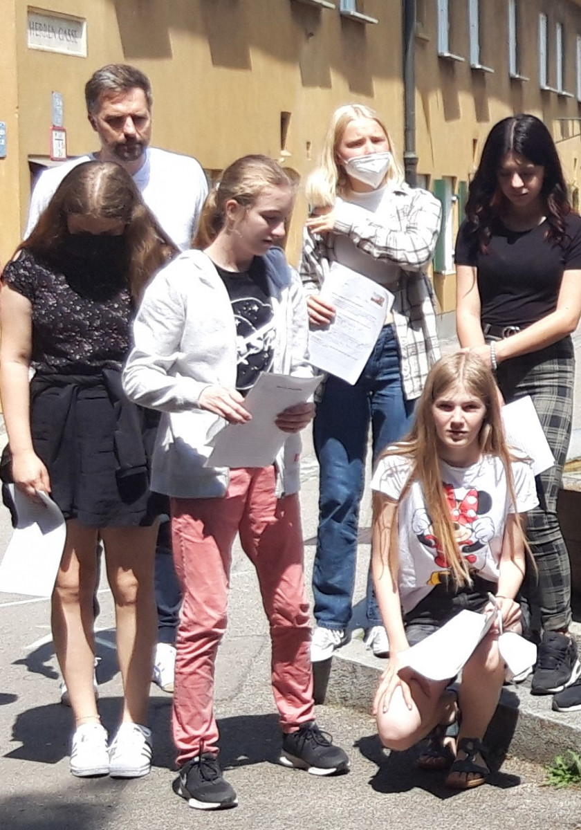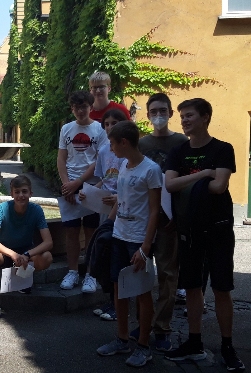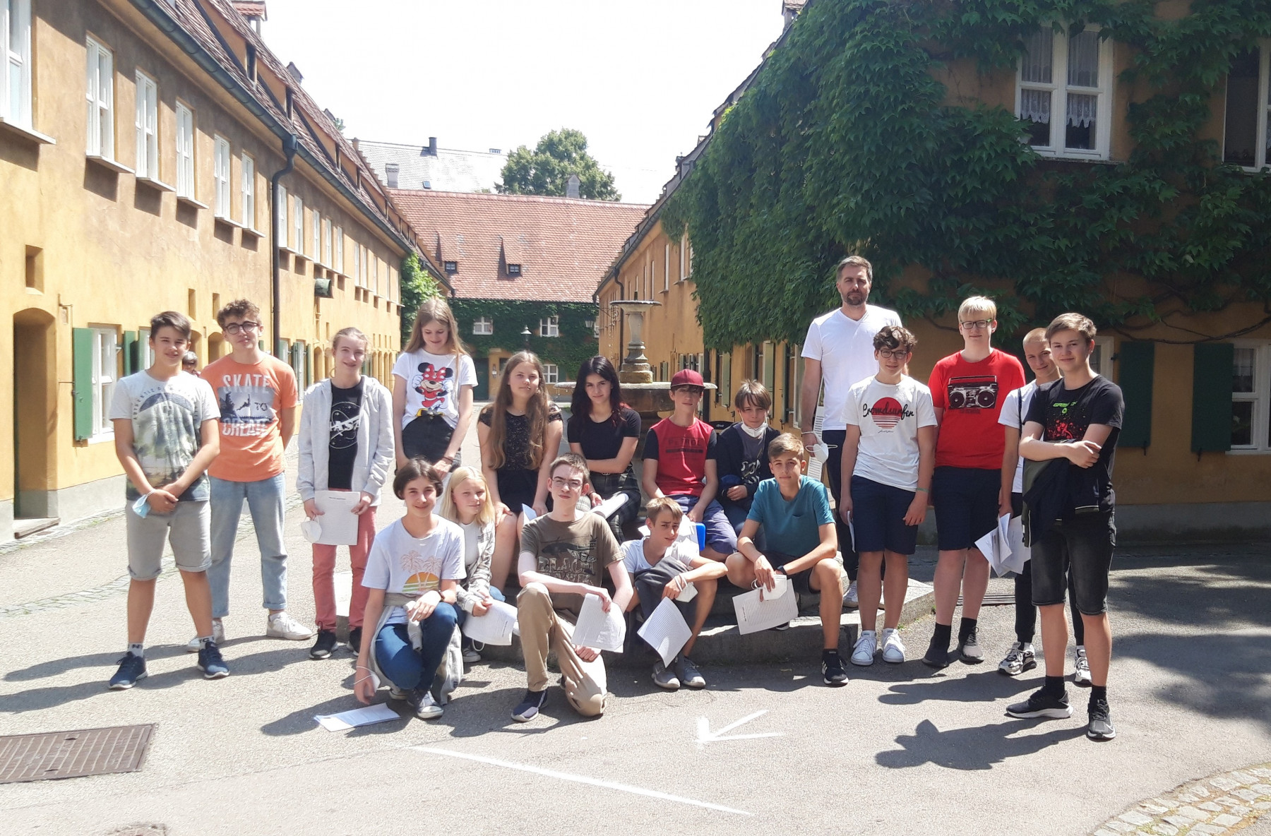 After months of virtual meetings, video conferences and actions separated by class, the students of the Erasmus project were all allowed to go on a real excursion to the Fuggerei together for the first time on 23.07.2021. Divided into two groups and guided by competent guides, they learned how the Fuggerei came into being, what activities the Fugger family carried out, how they expanded their empire across Europe through skilful management, strategic marriages and the right nose for gold mines, and what finally prompted Jakob Fugger to have such a social settlement built. Equipped with this prior knowledge, the pupils were then asked to explore the museums of the Fuggerei in more detail and were given a questionnaire with interesting aspects to investigate in the museum. Both the “Museum of the History of Living” and the “Museum of Everyday Life” as well as the “Museum of the Residents” each offer a detailed insight into the life of the Fuggerei residents then and now. However, the pupils were not only tasked with looking for answers, but they were also supposed to keep their eyes open for suggestions and develop ideas on how we could convey this knowledge about life in the Fuggerei in a playful and attractive way to our guests from the other countries.