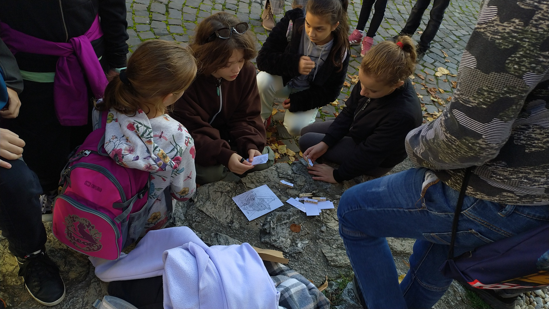 But first they were taken into the history of mining by the older pupils involved in the Erasmus project. They told them about who the „permonik“ was and how he helped the miners. The fifth-graders then, with the help of the mining dwarf, learned all sorts of words left behind by guests from German countries who came at the invitation of the monarch Bela IV. Some of the words made them sweat, others amused them. After completing the task, they went on to other stations, tried to name the individual buildings of the city castle complex, struggled to identify the bastions, managed to solve the task encrypted with runic writing. They solved the tasks not only in Slovak, but also in English. All pupils were successful, competitive and curious. Their laughing faces and expressions of their desire to meet the „permonik“ again some day proved that they enjoyed their wanderings around the city.