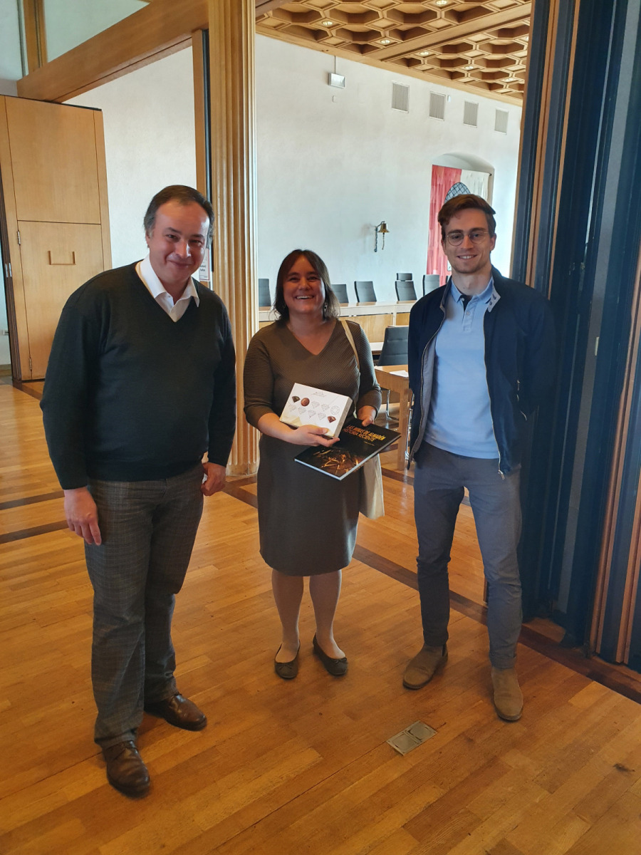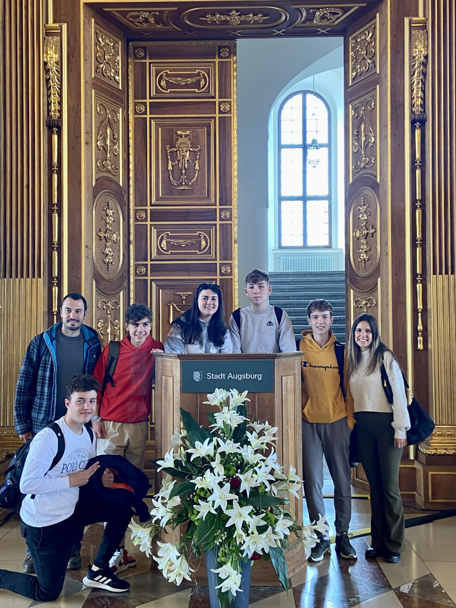 Potom bolo na programe oficiálne prijatie v meste Augsburg s viceprimátorkou Martinou Wildovou. Tá vzala projektovú skupinu na krátku cestu históriou Augsburgu a zdôraznila najmä to, aké dôležité sú v dnešnej dobe európske projekty, ako je ten náš. Ďalším logickým krokom bola návšteva „Zlatej sály“ na radnici o poschodie vyššie. Nádherné fotografie tejto úžasnej miestnosti, z ktorej sa naskytá aj veľmi krásny výhľad na Augsburg, budú všetkým slúžiť ako živá spomienka na príjemne strávený čas.