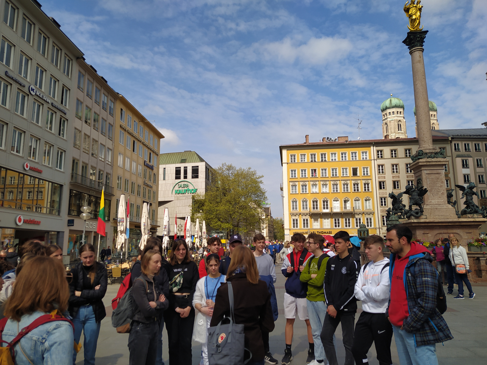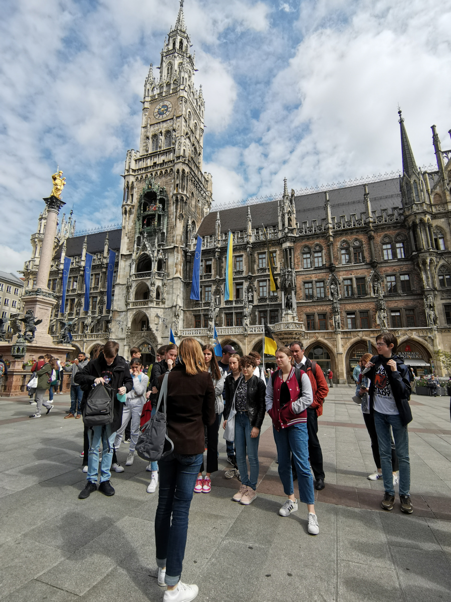 Keďže členovia projektu si doteraz prezreli mnohé významné miesta v Augsburgu a dozvedeli sa veľa o Jakobovi Fuggerovi v Európe, vo štvrtok bola na programe návšteva hlavného mesta spolkovej krajiny Mníchov. Po krátkej ceste vlakom ich už na námestí Marienplatz čakali dvaja sprievodcovia mestom. Počas komentovanej prehliadky sa dozvedeli veľa informácií o kráľoch, obchodníkoch, ale aj o najvýznamnejších kostoloch mesta. Prehliadka sa skončila na trhu Viktualienmarkt, práve v čase na obed.