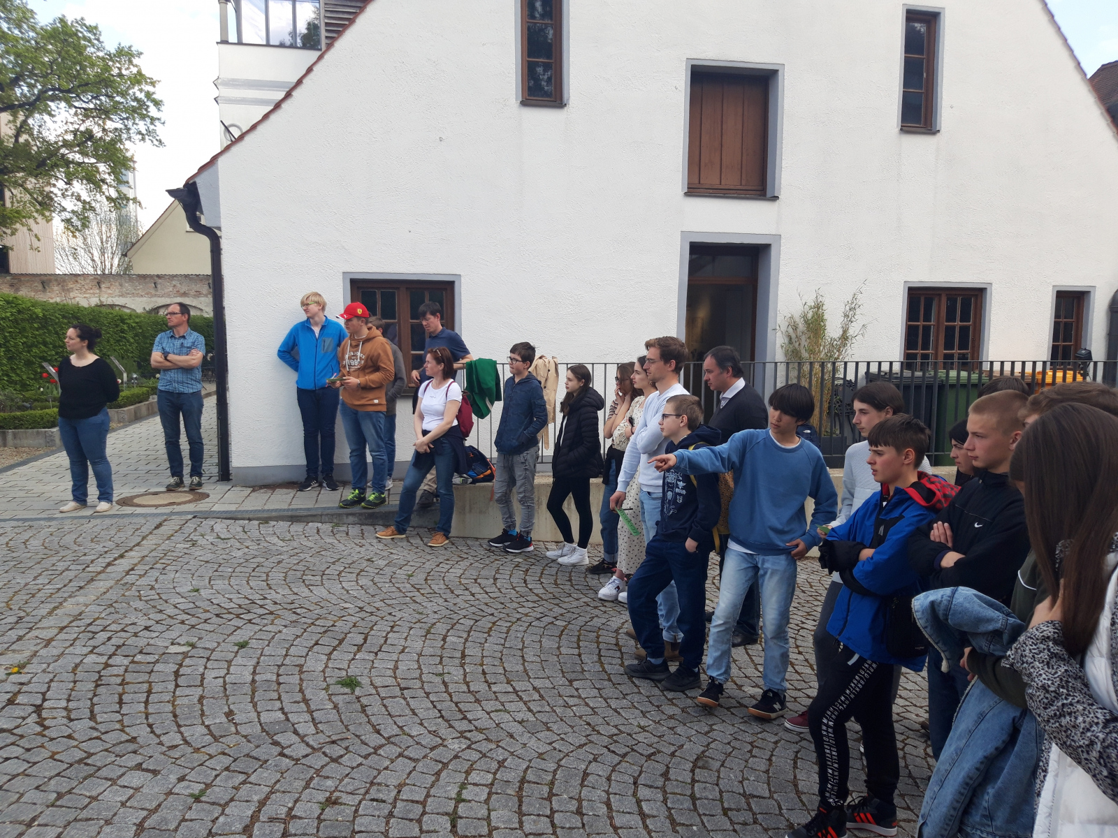 „Čas letí, keď sa bavíte,“ povedal kedysi Albert Einstein, a to určite platí aj pre projektový týždeň Erasmus. Prvých pár dní už bolo za nami, keď v utorok konečne nastal čas preskúmať jednu z najdôležitejších pamiatok, ktorú založil Jakob Fugger: Fuggerei – najstaršie sociálne sídlisko na svete. Skupina Erasmus sa rozdelila na dve skupiny a po krátkom úvode sa obe skupiny vydali na cestu históriou Fuggerei. Počas komentovanej prehliadky sa dozvedeli všetko od prvého nápadu postaviť Fuggerei, cez jej zničenie počas druhej svetovej vojny až po jej obnovu po vojne. Veľmi zaujímavá je nielen história tohto výnimočného miesta, ale aj jeho súčasný stavebný stav. Zaujímavosťou pre všetkých žiakov a učiteľov bol fakt, že nájomné sa od založenia Fuggerei nemenilo: vždy to bol jeden rýnsky gulden (dnes 88 centov) – plus tri modlitby denne pre rodinu Fuggerovcov.
