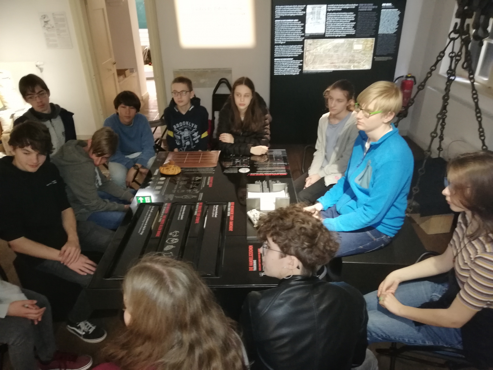 Po obedňajšej prestávke bola na programe návšteva múzea Fugger-Welser Erlebnis. Tu sa žiaci mohli dozvedieť veľa informácií o vplyve rodín Fugger a Welser až po súčasnosť. Na workshopoch v múzeu si žiaci uvedomili, že európsky pohľad na iné krajiny a celý svet z minulosti je v niektorých ohľadoch prítomný aj dnes. Ilustrovali to pomocou „mapy skutočného sveta“, ktorá na rozdiel od koloniálneho pohľadu ukazuje, že Európa nie je stredom sveta, ako je zobrazená na „bežných“ mapách. Okrem toho boli na programe ďalšie ústredné problémy, ako napríklad diskriminácia určitých skupín, pretože stredovek bol aj obdobím otroctva. Existoval veľký trh s otrokmi, do ktorého bola zapojená aj rodina Fuggerovcov.
