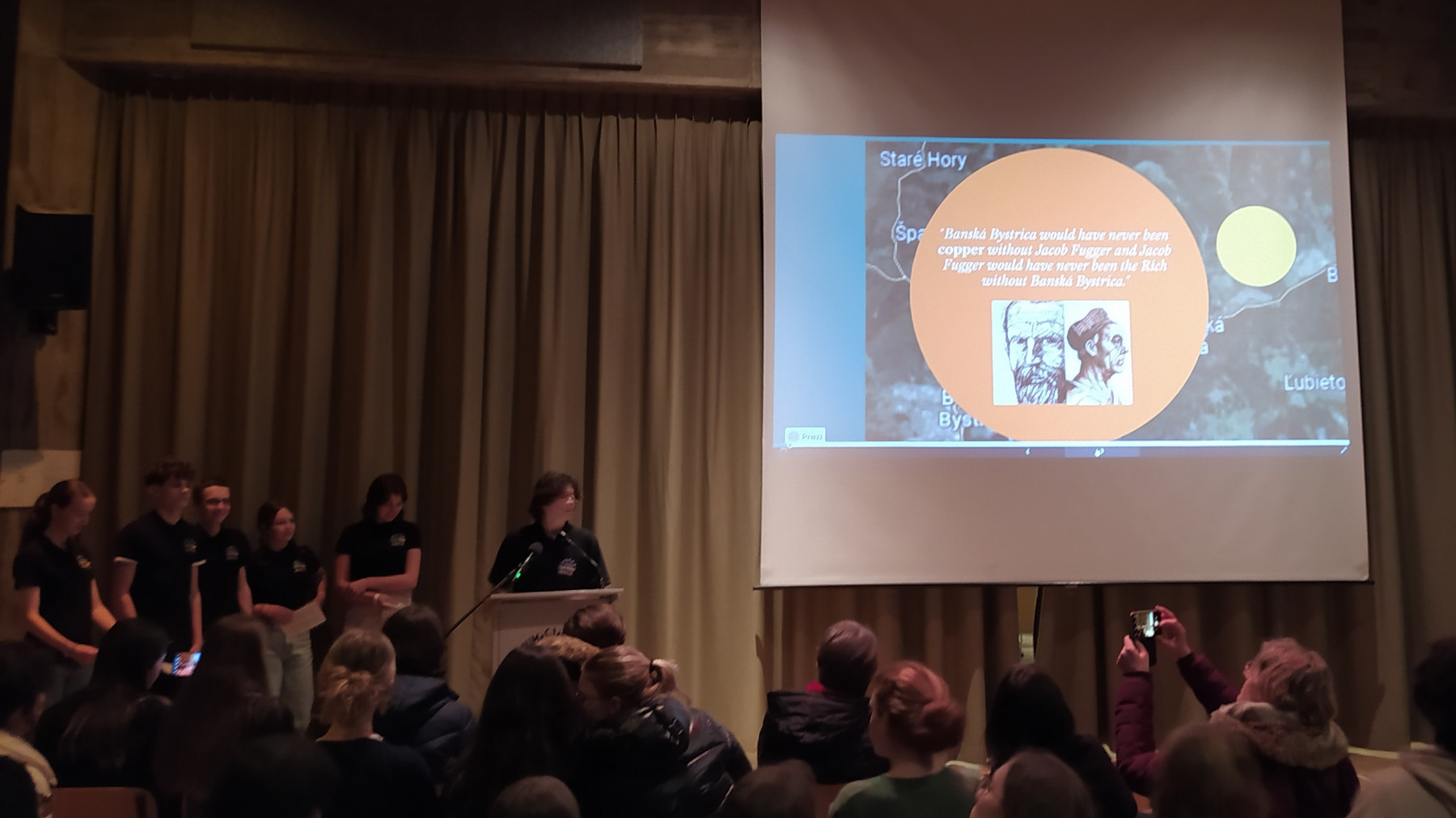 Študenti z Augsburgu, Almadénu, Banskej Bystrice a Sterzingu potom predstavili prítomným stopy Jakoba Fuggera v ich mestách a regióne. Počas záverečnej recepcie si hostia a návštevníci naďalej vymieňali názory na všetky poskytnuté informácie.