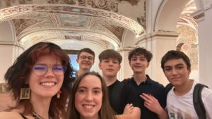 Lunch was enjoyed in a local restaurant alongside the Spanish delegation, providing an opportunity for informal exchange and reflection. Afterwards, students spent time in the Plaza Mayor, where they purchased souvenirs and captured group photos to commemorate the experience.